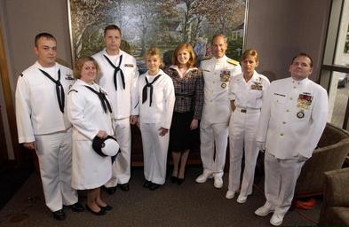 | Keywords: US Navy 041014-N-3659B-002 Members of the McIntyre family along with recruiters from the active and Reserve components assigned to Navy Recruiting District Montgomery, Ala., pose for a photo with Commander, Navy Recruiting Comm.jpg en Montgomery Ala Oct 14 2004 - Members of the McIntyre family along with recruiters from the active and Reserve components assigned to Navy Recruiting District Montgomery Ala pose for a photo with Commander Navy Recruiting Command Adm Jeffrey L Fowler The McIntyre family father Kerry third from left and mother Angela fourth from left enlisted in the Naval Reserve while their daughter Brandi center enlisted in the active force via the Delayed Entry Program along with her older brother Jamie who has already departed for recruit training in Great Lakes Ill U S Navy photo by Photographer s Mate 3rd Class Joseph M Buliavac RELEASED 2004-10-14 041014-N-3659B-002 Navy http //www navy mil/view_image asp id 18264 U S Navy photo by Photographer s Mate 3rd Class Joseph M Buliavac PD-USGov-Military-Navy Images from US Navy location Montgomery Ala Jeffrey Fowler |