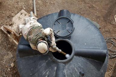 | Keywords: US Navy 041109-N-5386H-008 Equipment Operator 2nd Class John Hunter, assigned to Naval Mobile Construction Battalion Two Three (NMCB-23), fills a tank with water pumped from a water truck at a Coalition Forces camp.jpg en Al Anbar Province Iraq Nov 9 2004 Equipment Operator 2nd Class John Hunter assigned to Naval Mobile Construction Battalion Two Three NMCB-23 fills a tank with water pumped from a water truck at a Coalition Forces camp in Al Anbar province western Iraq Water is transferred via truck to battalion facilities from an Army-run pump station along the Euphrates River at Ar Ramadi Iraq U S Navy photo by Photographer s Mate 2nd Class Michael D Heckman RELEASED 2004-11-09 041109-N-5386H-008 Navy http //www navy mil/view_image asp id 22186 U S Navy photo by Photographer s Mate 2nd Class Michael D Heckman PD-USGov-Military-Navy Al Anbar Governorate Equipment Operator United States Navy Naval Mobile Construction Battalion 23 |