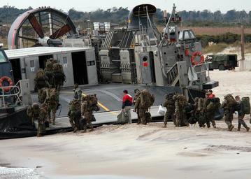 | Keywords: US Navy 041116-N-5313A-065 Marines from the 26th Marine Expeditionary Unit (MEU) board a Landing Craft Air Cushion (LCAC) to transport them to the amphibious assault ship USS Kearsarge (LHD 3).jpg en Onslow Bay N C Nov 16 2004 - Marines from the 26th Marine Expeditionary Unit MEU board a Landing Craft Air Cushion LCAC to transport them to the amphibious assault ship USS Kearsarge LHD 3 The Kearsarge Expeditionary Strike Group and the 26th MEU are conducting initial integrated training in preparation for an upcoming deployment U S Navy photo by Photographer's Mate Airman Sarah E Ard RELEASED 2004-11-16 041116-N-5313A-065 Navy http //www navy mil/view_image asp id 18957 U S Navy photo by Photographer's Mate Airman Sarah E Ard PD-USGov-Military-Navy Military in North Carolina Aboard USS Kearsarge LHD-3 LCAC-55 ship 1992 |