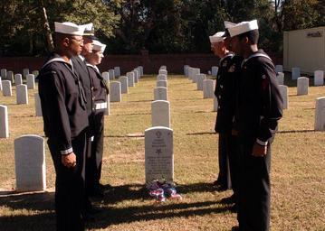 | Keywords: US Navy 041208-N-6332F-003 Sailors assigned to the guided missile destroyer Precommissioning Unit (PCU) James E. Williams (DDG 95), pay their respects during a memorial ceremony honoring Boatswain's Mate 1st Class James E. Will.jpg en Florence S C Dec 8 2004 - Sailors assigned to the guided missile destroyer Precommissioning Unit PCU James E Williams DDG 95 pay their respects during a memorial ceremony honoring Boatswain's Mate 1st Class James E Williams at the National Cemetery in Florence S C PCU James E Williams will be commissioned Saturday Dec 11th as the 45th Arleigh Burke-class guided missile destroyer authorized by Congress The ship honors Boatswain's Mate 1st Class James E Williams the Navy's highest decorated enlisted Sailor having been awarded the Congressional Medal of Honor for bravery and leadership in 1966 while serving as patrol boat captain and patrol commander of River Patrol Boat PBR 105 on the Mekong River Republic of Vietnam U S Navy Photo RELEASED 2004-12-08 041208-N-6332F-003 Navy http //www navy mil/view_image asp id 19495 U S Navy photo PD-USGov-Military-Navy Florence National Cemetery Boatswain's Mate United States Navy |