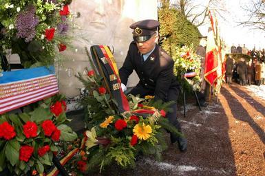 | Keywords: US Navy 041218-N-3236B-006 U.S. Military and Foreign Service representatives from several countries who lost service members during World War II, lay several wreathes at the General George S. Patton memorial park.jpg en Bastogne Belgium Dec 18 2004 - U S Military and Foreign Service representatives from several countries who lost service members during World War II lay several wreathes at the General George S Patton memorial park in Bastogne Belgium Events serve to commemorate the 60th anniversary of the German offensive action in the Ardennes region of eastern Belgium and northern Luxembourg where American forces suffered some of its largest casualties during WWII U S Navy photo by Photographer s Mate 1st Class Ted Banks RELEASED 2004-12-18 041218-N-3236B-006 Navy http //www navy mil/view_image asp id 19867 U S Navy photo by Photographer s Mate 1st Class Ted Banks PD-USGov-Military-Navy Images from US Navy location Bastogne Belgium Monuments and memorials in Bastogne 2004 in Bastogne December 2004 in Belgium 18 |