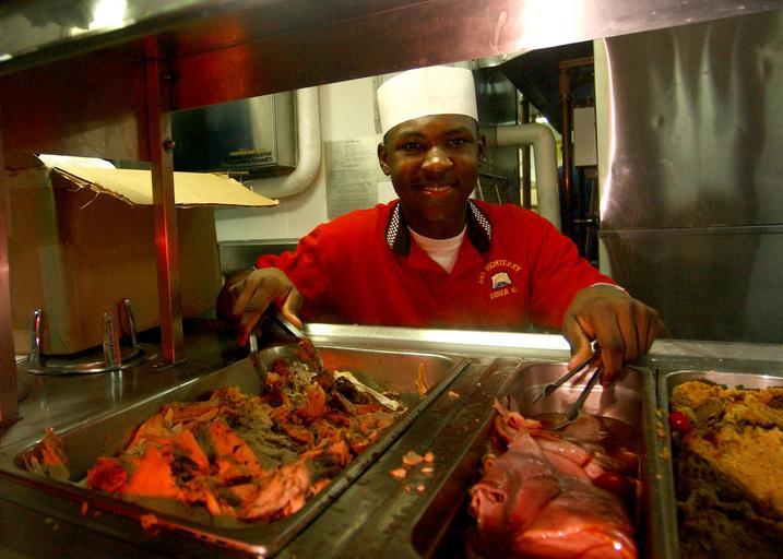 | Keywords: US Navy 041225-N-4953E-034 Culinary Specialist Seaman Demarcos Blow, serves turkey and ham during the Christmas dinner aboard the guided missile cruiser USS Monterey (CG 61) on Christmas Day.jpg en Persian Gulf Dec 25 2004 - Culinary Specialist Seaman Demarcos Blow serves turkey and ham during the Christmas dinner aboard the guided missile cruiser USS Monterey CG 61 on Christmas Day Monterey is assigned to Carrier Strike Group Ten CSG-10 and is currently on a regularly scheduled deployment in support of the Global War on Terrorism U S Navy photo by Photographer's Mate 2nd Class Danny Ewing Jr RELEASED 2004-12-25 041225-N-4953E-034 Navy http //www navy mil/view_image asp id 20057 U S Navy photo by Photographer's Mate 2nd Class Danny Ewing Jr PD-USGov-Military-Navy Culinary specialist United States Navy Aboard USS Monterey CG-61 Photographs by Danny Ewing Jr |