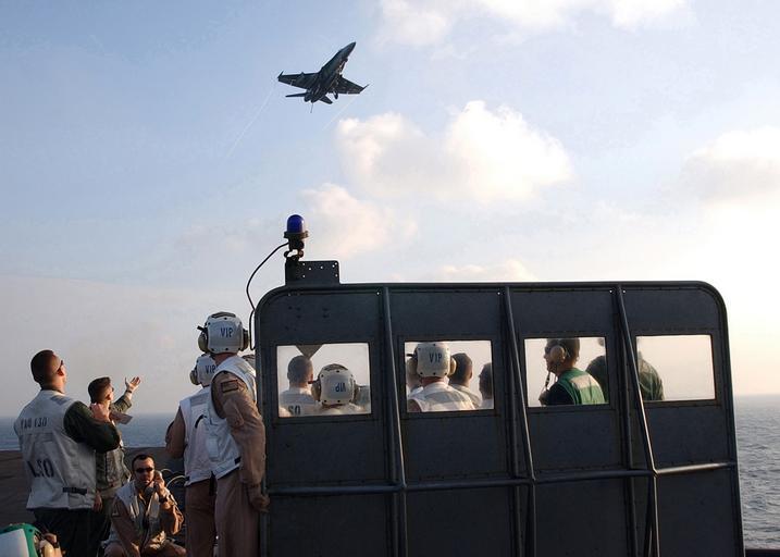 Keywords: US Navy 041226-N-2805L-067 U.S. Air Force officers observe a wave-off of an F-A-18 Hornet from the Landing Signal Officer (LSO) platform during a visit to the Nimitz-class aircraft carrier USS Harry S. Truman (CVN 75).jpg en Persian Gulf Dec 26 2004 - U S Air Force officers observe a wave-off of an F/A-18 Hornet from the Landing Signal Officer LSO platform during a visit to the Nimitz-class aircraft carrier USS Harry S Truman CVN 75 Embarked Carrier Air Wing Three CVW-3 is providing close air support and conducting intelligence surveillance and reconnaissance missions over Iraq The Truman Strike Group and CVW-3 are on a regularly scheduled deployment in support of the Global War on Terrorism U S Navy photo by Photographer's Mate Airman Lilliana La Vende RELEASED 2004-12-26 041226-N-2805L-067 Navy http //www navy mil/view_image asp id 20055 U S Navy photo by Photographer's Mate Airman Lilliana La Vende PD-USGov-Military-Navy Aboard USS Harry S Truman CVN-75 |