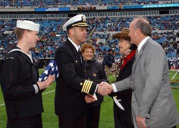 | Keywords: US Navy 041227-N-6631E-001 Commanding officer of the aircraft carrier USS John F. Kennedy (CV 67), Capt. Dennis E. FitzPatrick shakes hands with Jacksonville Jaguar owner Wayne Weaver.jpg en Jacksonville Fla Dec 27 2004 - Commanding officer of the aircraft carrier USS John F Kennedy CV 67 Capt Dennis E FitzPatrick shakes hands with Jacksonville Jaguar owner Wayne Weaver prior to the National Football League NFL game between the Houston Texans and the Jacksonville Jaguars FitzPatrick presented the Jaguars with a National Ensign that was flown in the Persian Gulf during Kennedy's recent deployment U S Navy photo by Photographer s Mate 3rd Class Ian Elias RELEASED 2004-12-27 041227-N-6631E-001 Navy http //www navy mil/view_image asp id 19838 U S Navy photo by Photographer s Mate 3rd Class Ian Elias PD-USGov-Military-Navy 2004 at Naval Air Station Jacksonville Aboard USS John F Kennedy CV-67 |