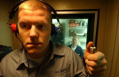 | Keywords: US Navy 041228-N-5821P-013 Lithographer Seaman Jared Benner of Surry, Maine, participates in an annual hearing test in USS Kitty Hawk's (CV 63) aviation medicine lab.jpg en Yokosuka Japan Dec 28 2004 - Lithographer Seaman Jared Benner of Surry Maine participates in an annual hearing test in USS Kitty Hawk's CV 63 aviation medicine lab As part of a vast health care system the hearing conservation program is designed to monitor Sailors hearing abilities when their working environment is considered a high-level noise area Currently in port Kitty Hawk demonstrates power projection and sea control as the world's only permanently forward-deployed aircraft carrier operating from Yokosuka Japan U S Navy photo by Photographer's Mate 3rd Class Jason T Poplin RELEASED 2004-12-28 041228-N-5821P-013 Navy http //www navy mil/view_image asp id 20124 U S Navy photo by Photographer's Mate 3rd Class Jason T Poplin PD-USGov-Military-Navy United States Fleet Activities Yokosuka Aboard USS Kitty Hawk CV-63 |