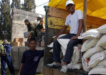 | Keywords: US Navy 050105-N-5376G-007 Aid workers and military personnel help pass out relief supplies from a truck at Sultan Iskandar Muda Air Force Base in Banda Aceh, Indonesia.jpg en Aceh Sumatra Indonesia Jan 5 2005 Aid workers and military personnel help pass out relief supplies from a truck at Sultan Iskandar Muda Air Force Base in Banda Aceh Indonesia Medical teams from USS Abraham Lincoln CVN 72 Carrier Air Wing Two CVW-2 and the International Organization for Migration IOM set-up a triage site located on Sultan Iskandar Muda Air Force Base in Banda Aceh Sumatra The two teams worked together with members of the Australian Air Force to provide initial medical care to victims of the Tsunami-stricken coastal regions The Abraham Lincoln Carrier Strike Group is currently operating in the Indian Ocean off the waters of Indonesia and Thailand in support of Operation Unified Assistance U S Navy photo by Photographer s Mate 3rd Class Benjamin D Glass RELEASED 2005-01-05 050105-N-5376G-007 Navy http //www navy mil/view_image asp id 20189 U S Navy photo by Photographer s Mate 3rd Class Benjamin D Glass PD-USGov-Military-Navy Sultan Iskandar Muda International Airport Humanitarian aid in Indonesia |