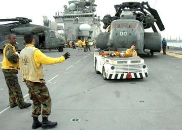 | Keywords: US Navy 050110-N-8801B-300 Aviation Boatswain^rsquo,s Mates guide a tow tractor driver as they park an MH-53E Sea Dragon helicopter, assigned to the Blackhawks of Helicopter Mine Countermeasures Squadron Fifteen (HM-15), on th.jpg en Persian Gulf Jan 10 2005 - Aviation Boatswain s Mates guide a tow tractor driver as they park an MH-53E Sea Dragon helicopter assigned to the Blackhawks of Helicopter Mine Countermeasures Squadron Fifteen HM-15 on the flight deck aboard USS Essex LHD 2 Essex is undergoing preparations to support Operation Unified Assistance the humanitarian operation effort in the wake of the Tsunami that struck South East Asia U S Navy photo by Photographer s Mate 3rd Class Travis M Burns RELEASED 2005-01-10 050110-N-8801B-300 Navy http //www navy mil/view_image asp id 20486 U S Navy photo by Photographer s Mate 3rd Class Travis M Burns PD-USGov-Military-Navy Aboard USS Essex LHD-2 MH-53E Sea Dragon Helicopter Mine Countermeasures Squadron 15 United States Navy |