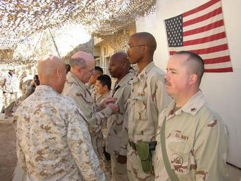 MAKE A MEME View Large Image Navy 050113-N-2757S-004 Chief of Naval Operations (CNO), Adm. Vern Clark, does the honors of awarding Fleet Marine Force warfare specialty pins to military members while visiting troops in the Middle East.jpg en Asad Iraq Jan 13 2005 - ...