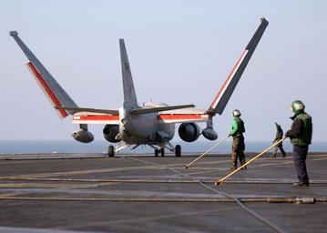 | Keywords: US Navy 050124-N-5345W-038 Arresting gear personnel watch as an S-3B Viking assigned to the Checkmates of Sea Control Squadron Two Two (VS-22) folds its wings after an arrested landing on the flight deck of the Nimitz-class air.jpg en Persian Gulf Jan 24 2005 - Arresting gear personnel watch as an S-3B Viking assigned to the Checkmates of Sea Control Squadron Two Two VS-22 folds its wings after an arrested landing on the flight deck of the Nimitz-class aircraft carrier USS Harry S Truman CVN 75 Carrier Air Wing Three CVW-3 is embarked aboard Truman and is providing close air support and conducting intelligence surveillance and reconnaissance missions over Iraq The Truman Strike Group is on a regularly scheduled deployment in support of the Global War on Terrorism U S Navy photo by Photographer's Mate Airman Kristopher Wilson RELEASED 2005-01-24 050124-N-5345W-038 Navy http //www navy mil/view_image asp id 21155 U S Navy photo by Photographer's Mate Airman Kristopher Wilson PD-USGov-Military-Navy Aboard USS Harry S Truman CVN-75 |