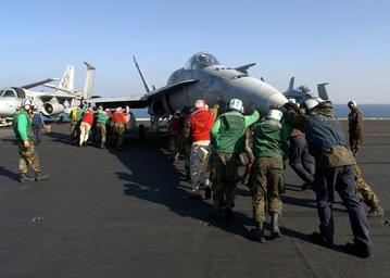 | Keywords: US Navy 050124-N-5345W-006 Flight deck personnel aboard the Nimitz-class aircraft carrier USS Harry S. Truman (CVN 75) conducts a push back of F-A-18A- Hornet.jpg en Persian Gulf Jan 24 2005 Flight deck personnel aboard the Nimitz-class aircraft carrier USS Harry S Truman CVN 75 conducts a push back of F/A-18A+ Hornet assigned to the Silver Eagles of Marine Strike Fighter Attack Squadron One One Five VMFA-115 Carrier Air Wing Three CVW-3 is embarked aboard Harry S Truman and is providing close air support and conducting intelligence surveillance and reconnaissance missions over Iraq The Truman Carrier Strike Group and CVW-3 are on a regularly scheduled deployment in support of the Global War on Terrorism U S Navy photo by Photographer's Mate Airman Kristopher Wilson RELEASED 2005-01-24 050124-N-5345W-006 Navy http //www navy mil/view_image asp id 21274 U S Navy photo by Photographer's Mate Airman Kristopher Wilson PD-USGov-Military-Navy Aboard USS Harry S Truman CVN-75 |