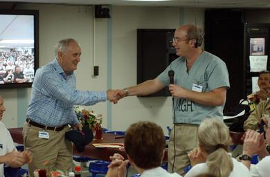 | Keywords: US Navy 050214-N-8796S-035 CEO of the non-governmental organization Project Hope, Dr. John Howe, left, and President, Massachusetts General Hospital, Dr. Peter Slavin, shake hands during an address to the crew aboard the hospit.jpg en Indian Ocean Feb 14 2005 CEO of the non-governmental organization Project Hope Dr John Howe left and President Massachusetts General Hospital Dr Peter Slavin shake hands during an address to the crew aboard the Military Sealift Command MSC hospital ship USNS Mercy T-AH 19 Mercy is serving as an enabling platform to assist humanitarian operations ashore in ways that host nations and international relief organization find useful Mercy is currently off the waters of Indonesia in support of Operation Unified Assistance the humanitarian relief effort to aid the victims of the tsunami that struck Southeast Asia U S Navy photo by Photographer's Mate 2nd Class Timothy Smith RELEASED 2005-02-14 050214-N-8796S-035 Navy http //www navy mil/view_image asp id 21864 U S Navy photo by Photographer's Mate 2nd Class Timothy Smith PD-USGov-Military-Navy Aboard USNS Mercy T-AH-19 |