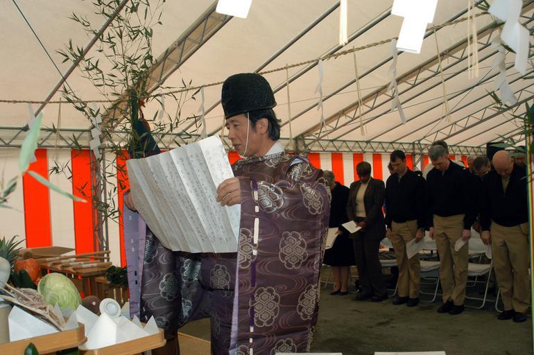 | Keywords: US Navy 050228-N-2970T-010 Attendees bows their heads as a Shinto Priest reads a prayer during a Navy Exchange groundbreaking ceremony held on board U.S. Fleet Activities Sasebo, Japan.jpg en Sasebo Japan Feb 28 2005 - Attendees bows their heads as a Shinto Priest reads a prayer during a Navy Exchange groundbreaking ceremony held on board U S Fleet Activities Sasebo Japan The ceremony is the first step to the construction of the new Navy Exchange on Sasebo s main base which is due to be completed January 2006 U S Navy photo by Photographer s Mate Airman Marvin E Thompson Jr RELEASED 2005-02-28 050228-N-2970T-010 Navy http //www navy mil/view_image asp id 22341 U S Navy photo by Photographer s Mate Airman Marvin E Thompson Jr PD-USGov-Military-Navy United States Fleet Activities Sasebo Navy Exchanges Ground-breaking ceremonies ShintÅ prayer |