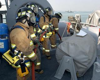| Keywords: US Navy 050228-N-9563N-004 Members of Naval Support Activity (NSA) Bahrain's Emergency Response Team (ERT) send-down a fire hose to fight a simulated fire aboard the mine countermeasure ship USS Cardinal (MHC 60) during exercis.jpg en Manama Bahrain Feb 28 2005 - Members of Naval Support Activity NSA Bahrain's Emergency Response Team ERT send-down a fire hose to fight a simulated fire aboard the mine countermeasure ship USS Cardinal MHC 60 during exercise Desert Sailor 2005 Exercise Desert Sailor is an annual two-week exercise to ensure emergency response efforts are well coordinated with local Bahraini directorates in case of an actual emergency U S Navy photo by Photographer's Mate 2nd Class Phillip A Nickerson Jr RELEASED 2005-02-28 050228-N-9563N-004 Navy http //www navy mil/view_image asp id 22296 U S Navy photo by Photographer's Mate 2nd Class Phillip A Nickerson Jr PD-USGov-Military-Navy Desert Sailor USS Cardinal MHC 60 |