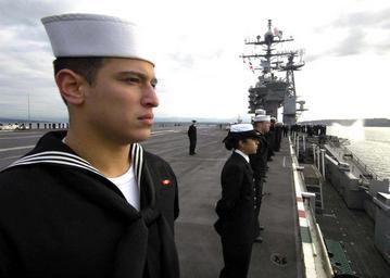 | Keywords: US Navy 050304-N-0499M-050 Airman Luis Badillo of Miami, Fla., mans the rails aboard the Nimitz-class aircraft carrier USS Abraham Lincoln (CVN 72) as the ship returns home to Naval Station Everett, Wash., following a successfu.jpg en Everett Wash Mar 4 2005 - Airman Luis Badillo of Miami Fla mans the rails aboard the Nimitz-class aircraft carrier USS Abraham Lincoln CVN 72 as the ship returns home to Naval Station Everett Wash following a successful deployment to the Western Pacific Ocean The Lincoln Carrier Strike Group and embarked Carrier Air Wing Two CVW-2 supported Operation Unified Assistance the humanitarian relief effort to aid the victims of the tsunami that struck Southeast Asia U S Navy photo by Photographers Mate 3rd Class James R McGury RELEASED 2005-03-04 050304-N-0499M-050 Navy http //www navy mil/view_image asp id 22512 U S Navy photo by Photographers Mate 3rd Class James R McGury PD-USGov-Military-Navy Naval Station Everett Aboard USS Abraham Lincoln CVN-72 Manning the rail in the United States Navy |