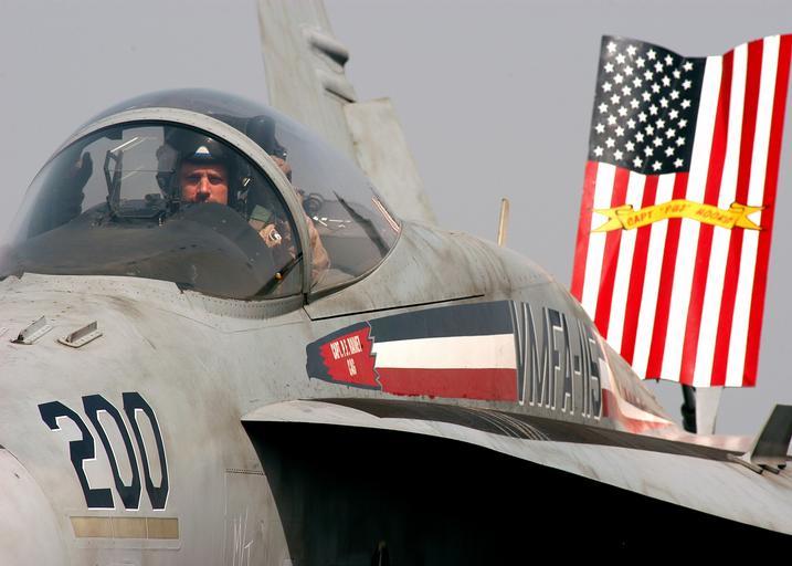 Keywords: US Navy 050305-N-2984R-001 pilot of an F-A-18A- Hornet conducts a check of his speed break prior to launch aboard the Nimitz-class aircraft carrier USS Harry S. Truman (CVN 75).jpg en Persian Gulf Mar 5 2005 - The pilot of an F/A-18A+ Hornet assigned to the Silver Eagles of Marine Fighter Attack Squadron One One Five VMFA-115 conducts a check of his speed break prior to launch aboard the Nimitz-class aircraft carrier USS Harry S Truman CVN 75 Carrier Air Wing Three CVW-3 is embarked aboard Truman and is providing close air support and conducting intelligence surveillance and reconnaissance over Iraq The Truman Carrier Strike Group is on a regularly scheduled deployment in support of the Global War on Terrorism U S Navy photo by Photographer's Mate Airman Ricardo J Reyes RELEASED 2005-03-05 050305-N-2984R-001 Navy http //www navy mil/view_image asp id 22577 U S Navy photo by Photographer's Mate Airman Ricardo J Reyes PD-USGov-Military-Navy Aboard USS Harry S Truman CVN-75 |