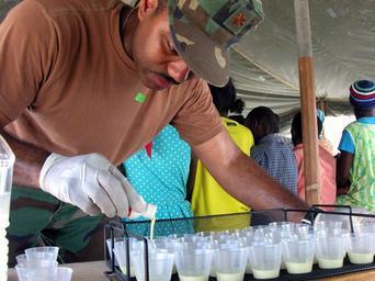 | Keywords: US Navy 050317-N-9594C-010 U.S. Navy Lt. Cmdr. Frederick Brown, assigned to Fleet Hospital Great Lakes, Ill., prepares doses of Pin-X, a pinworm treatment, as Haitians listen to health and hygiene information during a Navy Med.jpg en Gonaives Haiti Mar 17 2005 U S Navy Lt Cmdr Frederick Brown assigned to Fleet Hospital Great Lakes Ill prepares doses of Pin-X a pinworm treatment as Haitians listen to health and hygiene information during a Navy Medical Readiness Training Exercise in Gonaives Haiti Navy Reservists from Fleet Hospital Great Lakes and Navy Medical Reserve Command Portsmouth Hospital provided medical and dental care and education to more than five thousand Haitians during New Horizons Haiti New Horizons is a three-month humanitarian and civic assistance project in Haiti sponsored by Commander U S Southern Command The Task Force conducting New Horizons will build three schoolhouses drill three potable water wells and conduct free health clinics U S Navy photo by Photographer's Mate 1st Class F Julian Carroll RELEASED 2005-03-17 050317-N-9594C-010 Navy http //www navy mil/view_image asp id 22949 U S Navy photo by Photographer's Mate 1st Class F Julian Carroll PD-USGov-Military-Navy Healthcare in Gonaïves People of Gonaïves Military people of the United States in Gonaïves 2005 in Gonaïves 0317 March 2005 in Haiti 17 |
