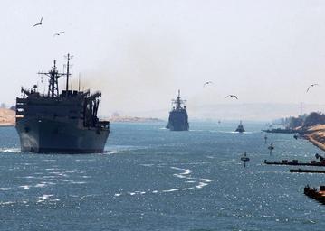 | Keywords: US Navy 050326-N-6363M-007 The Military Sealift Command (MSC) fast combat support ship USNS Arctic (T-AOE 8) and the guided missile cruiser USS Monterey (CG 61) transit the Suez Canal.jpg en Suez Canal Mar 26 2005 - The Military Sealift Command MSC fast combat support ship USNS Arctic T-AOE 8 and the guided missile cruiser USS Monterey CG 61 follow behind the Nimitz-class aircraft carrier USS Harry S Truman CVN 75 while transiting the Suez Canal The Harry S Truman Carrier Strike Group was recently relieved after completing nearly four months in the Persian Gulf in support of the Global War on Terrorism U S Navy photo by Photographer's Mate Airman Philip V Morrill RELEASED 2005-03-26 050326-N-6363M-007 Navy http //www navy mil/view_image asp id 23203 U S Navy photo by Photographer's Mate Airman Philip V Morrill PD-USGov-Military-Navy US Navy in the Suez Canal Aboard USS Harry S Truman CVN-75 USNS Arctic T-AOE-8 |