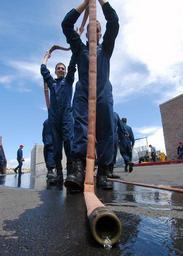 | Keywords: US Navy 050331-N-3019M-004 Sailors assigned to the guided missile frigate USS Crommelin (FFG 37) drain a fire hose after participating in a pipe patching exercise.jpg en Pearl Harbor Hawaii Mar 31 2005 - Sailors assigned to the guided missile frigate USS Crommelin FFG 37 drain a fire hose after participating in a pipe patching exercise at the Center for Naval Engineering Fire Fighting School on board Naval Station Pearl Harbor Hawaii The school teaches Sailors basic firefighting techniques through a series of classroom and hands-on training scenarios U S Navy photo by Journalist 3rd Class Ryan C McGinley RELEASED 2005-03-31 050331-N-3019M-004 Navy http //www navy mil/view_image asp id 23274 U S Navy photo by Journalist 3rd Class Ryan C McGinley PD-USGov-Military-Navy People at Pearl Harbor Images from US Navy location Pearl Harbor Hawaii 2005 in Pearl Harbor USS Crommelin FFG-37 |