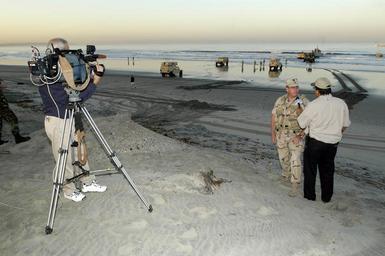 | Keywords: US Navy 050411-N-1397H-011 Petty Officer 1st Class John Beasley, assigned to Beach Master Unit One (BMU-1), is interviewed by Rod Luck from the KUSI News Morning show in San Diego, Calif.jpg en San Diego Calif Apr 11 2005 Petty Officer 1st Class John Beasley assigned to Beach Master Unit One BMU-1 is interviewed by Rod Luck from the KUSI News Morning show in San Diego Calif BMU-1 demonstrated a standard Back Loading exercise during a live broadcast on the beach in San Diego U S Navy photo by Photographer s Mate 2nd Class Prince A Hughes III RELEASED 2005-04-11 050411-N-1397H-011 Navy http //www navy mil/view_image asp id 23539 U S Navy photo by Photographer s Mate 2nd Class Prince A Hughes III PD-USGov-Military-Navy Beachmaster Unit One Naval Base San Diego in the 2000s KUSI-TV |