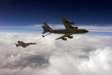 | Keywords: US Navy 050420-N-6694B-001 An F-A-18C Hornet, assigned to the Argonauts of Strike Fighter Squadron One Four Seven (VFA-147), receives fuel from a U.S. Air Force KC-135 Stratotanker during a combat mission.jpg en Persian Gulf April 20 2005 - An F/A-18C Hornet assigned to the Argonauts of Strike Fighter Squadron One Four Seven VFA-147 receives fuel from a U S Air Force KC-135 Stratotanker during a combat mission flown from the Nimitz-class aircraft carrier USS Carl Vinson CVN 70 The Carl Vinson Carrier Strike Group is conducting operations in support of multi-national forces in Iraq and maritime security operations in the Persian Gulf Carl Vinson will end its deployment with a homeport shift to Norfolk Va and will conduct a three-year refuel and complex overhaul U S Navy photo by Cmdr Don Berry RELEASED 2005-04-20 050420-N-6694B-001 Navy http //www navy mil/view_image asp id 23781 U S Navy photo by Cmdr Don Berry PD-USGov-Military-Navy Aerial refueling of F/A-18C Hornet Aboard USS Carl Vinson CVN-70 Boeing KC-135 Stratotanker Strike Fighter Squadron 147 United States Navy |