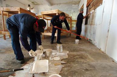 | Keywords: US Navy 050420-N-8629M-125 U.S. Navy Sailors and Civilian Mariners from the Military Sealift Command (MSC) ships, USNS Niagara Falls (T-AFS 3), USNS San Jose (T-AFS 7) and USNS Mercy (T-AH 19), participate in a community relati.jpg en Nias Indonesia April 20 2005 U S Navy Sailors and Civilian Mariners from the Military Sealift Command MSC ships USNS Niagara Falls T-AFS 3 USNS San Jose T-AFS 7 and USNS Mercy T-AH 19 participate in a community relations project to paint and repair damaged buildings at a nursing school in Nias Indonesia At the request of the government of Indonesia the Military Sealift Command MSC hospital ship USNS Mercy T-AH 19 MSC combat stores ships USNS Niagara Falls T-AFS 3 and USNS San Jose T-AFS 7 are on station off the coast of Nias providing assistance as determined appropriate and necessary with earthquake disaster relief efforts and provide medical assistance to those in need U S Navy photo by Photographer's Mate 3rd Class Rebecca J Moat RELEASED 2005-04-20 050420-N-8629M-125 Navy http //www navy mil/view_image asp id 23790 U S Navy photo by Photographer's Mate 3rd Class Rebecca J Moat PD-USGov-Military-Navy Images from US Navy location Nias Indonesia Aboard USS Niagara Falls AFS-3 |