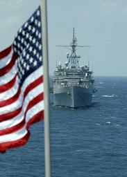 | Keywords: US Navy 050430-N-1134F-031 The amphibious dock landing ship USS Nashville (LPD 13) sits anchored astern of the amphibious assault ship USS Bataan (LHD 5) off the Florida coast.jpg en Ft Lauderdale Fla April 30 2005 - The amphibious dock landing ship USS Nashville LPD 13 sits anchored astern of the amphibious assault ship USS Bataan LHD 5 off the Florida coast while participating in the Navy's annual Fleet Week festivities Both the Nashville and Bataan were part of a Marine Invasion demonstration utilizing amphibious craft embarked on each vessel as well as serving as a backdrop for the show U S Navy photo by Chief Journalist Dave Fitz RELEASED 2005-04-30 050430-N-1134F-031 Navy http //www navy mil/view_image asp id 24031 U S Navy photo by Chief Journalist Dave Fitz PD-USGov-Military-Navy Images from US Navy location Fort Lauderdale Fla Views from USS Bataan LHD-5 USS Nashville LPD-13 Photographs of flags of the United States |