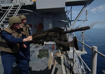 | Keywords: US Navy 050504-N-5526M-002 Quartermaster Seaman Jeffery Hammond fires a MK-79 Grenade Launcher as Fire Controlman 3rd Class Albert Roddy checks for accuracy during a Pre-Aim Calibration Fire (PACFIRE) exercise.jpg en Horn of Africa May 4 2005 - Quartermaster Seaman Jeffery Hammond fires a MK-79 Grenade Launcher as Fire Controlman 3rd Class Albert Roddy checks for accuracy during a Pre-Aim Calibration Fire PACFIRE exercise Normandy is currently conducting Maritime Security Operations MSO which set the conditions for security and stability in the maritime environment Normandy is currently conducting operations in the 5th Fleet area of responsibility U S Navy photo by Photographer's Mate 1st Class Robert R McRill RELEASED 2005-05-04 050504-N-5526M-002 Navy http //www navy mil/view_image asp id 24221 U S Navy photo by Photographer's Mate 1st Class Robert R McRill PD-USGov-Military-Navy Horn of Africa Aboard USS Normandy CG-60 Fire Controlman Shooting Photographs by Robert R McRill |