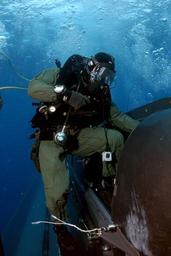 | Keywords: US Navy 050505-N-3093M-001 A member of SEAL Delivery Vehicle Team Two (SDVT-2) climbs aboard one of the team's SEAL Delivery Vehicles (SDV) before launching from the back of the Los Angeles-class attack submarine USS Philadelph.jpg en Atlantic Ocean May 5 2005 - A member of SEAL Delivery Vehicle Team Two SDVT-2 climbs aboard one of the team's SEAL Delivery Vehicles SDV before launching from the back of the Los Angeles-class attack submarine USS Philadelphia SSN 690 on a training exercise The SDVs are used to carry Navy SEALs from a submerged submarine to enemy targets while staying underwater and undetected SDVT-2 is stationed at Naval Amphibious Base Little Creek Va and conducts operations throughout the Atlantic Southern and European command areas of responsibility U S Navy photo by Chief Photographer's Mate Andrew McKaskle RELEASED 2005-05-05 050505-N-3093M-001 Navy http //www navy mil/view_image asp id 25496 U S Navy photo by Chief Photographer's Mate Andrew McKaskle PD-USGov-Military-Navy USS Philadelphia SSN-690 SEAL Delivery Vehicle Underwater photographs of scuba divers |