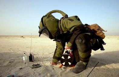 | Keywords: US Navy 050510-N-4309A-114 Hull Maintenance Technician 2nd Class Carl Harris inspects the remaining high explosive material from a disrupted improvised explosive device during a training exercise in Bahrain.jpg en Bahrain May 10 2005 - Hull Maintenance Technician 2nd Class Carl Harris inspects the remaining high explosive material from a disrupted improvised explosive device during a training exercise in Bahrain Members of Explosive Ordnance Disposal Mobile Unit Four EODMU-4 Detachment Twelve are conducting a Final Evaluation Phase of training to simulate operations the team may experience while supporting maritime security operations MSO MSO deny international terrorists use of the maritime environment as a venue for attack or to transport personnel weapons or other material U S Navy photo by Photographer's Mate 1st Class Aaron Ansarov RELEASED 2005-05-10 050510-N-4309A-114 Navy http //www navy mil/view_image asp id 24320 U S Navy photo by Photographer's Mate 1st Class Aaron Ansarov PD-USGov-Military-Navy United States Navy Explosive Ordnance Disposal Hull Maintenance Technician United States Navy Bomb suits Improvised explosive devices United States Navy images from Bahrain Explosive Ordnance Disposal Mobile Unit 4 |