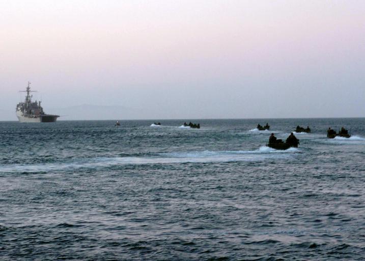 Keywords: US Navy 050519-N-2515C-011 Marines assigned to the 13th Marine Expeditionary Unit (MEU) return to the amphibious transport dock USS Cleveland (LPD 7).jpg en Pacific Ocean May 19 2005 - Marines assigned to the 13th Marine Expeditionary Unit MEU return to the amphibious transport dock USS Cleveland LPD 7 in Amphibious Assault Vehicles after completion of a training exercise Cleveland and the 13th MEU completed its Composite Training Unit Exercise COMPTUEX and are scheduled to deploy to the Western Pacific and Persian Gulf U S Navy photo by Photographer's Mate 3rd Class James Spiker RELEASED 2005-05-19 050519-N-2515C-011 Navy http //www navy mil/view_image asp id 24788 U S Navy photo by Photographer's Mate 3rd Class James Spiker PD-USGov-Military-Navy USS Cleveland LPD-7 Amphibious Assault Vehicle