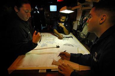 | Keywords: US Navy 050523-N-8604L-035 Operations specialists plot the transit course of USS Kitty Hawk (CV 63) steaming out of Truman Bay for its summer underway period.jpg en Pacific Ocean May 23 2005 - Operations specialists plot the transit course of USS Kitty Hawk CV 63 steaming out of Truman Bay for its summer underway period Kitty Hawk's operations specialists operate radar navigation and communication equipment to detect and track air surface and weapons contacts Currently underway in the western Pacific Ocean Kitty Hawk demonstrates power projection and sea control as the world's only permanently forward-deployed aircraft carrier operating from Yokosuka Japan U S Navy photo by Photographer's Mate Airman Joshua Wayne LeGrand RELEASED 2005-05-23 050523-N-8604L-035 Navy http //www navy mil/view_image asp id 24716 U S Navy photo by Photographer's Mate Airman Joshua Wayne LeGrand PD-USGov-Military-Navy Aboard USS Kitty Hawk CV-63 Operations Specialist United States Navy |