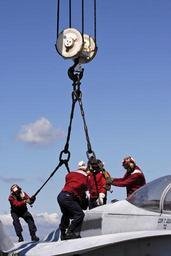| Keywords: US Navy 050524-N-4166B-001 Flight Deck personnel assigned to Air Department conduct aircraft salvage training.jpg en Everett Wash May 24 2005 - Flight Deck personnel assigned to Air Department conduct aircraft salvage training with the emergency heavy lift crane Tilly aboard the Nimitz- class aircraft carrier USS Abraham Lincoln CVN 72 The Lincoln is currently undergoing a planned maintenance availability period U S Navy photo by Photographer's Mate Airman Jordon R Beesley RELEASED 2005-05-24 050524-N-4166B-001 Navy http //www navy mil/view_image asp id 24654 U S Navy photo by Photographer's Mate Airman Jordon R Beesley PD-USGov-Military-Navy Naval Station Everett Aboard USS Abraham Lincoln CVN-72 Crane hooks |