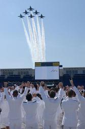 | Keywords: US Navy 050527-F-7379W-097 The U.S. Navy flight demonstration team, the Blue Angels, perform a fly-over during the opening ceremonies for the 2005 Graduation and Commissioning Ceremony at the U.S. Naval Academy.jpg en Annapolis Md May 27 2005 - The U S Navy flight demonstration team the Blue Angels perform a fly-over during the opening ceremonies for the 2005 Graduation and Commissioning Ceremony at the U S Naval Academy Nine hundred seventy-six Midshipmen graduated from the U S Naval Academy and became commissioned officers in the U S Military President George W Bush delivered the commencement address and personally greeted each graduate during the ceremony The men and women of the graduating class were sworn into the Navy as Ensigns or into the Marine Corps as Second Lieutenants U S Air Force photo by Staff Sgt Charles Walker RELEASED 2005-05-27 050527-F-7379W-097 Navy http //www navy mil/view_image asp id 24807 U S Navy photo PD-USGov-Military-Navy Flyovers in the United States Graduation and Commissioning Ceremony May 27 2005 Blue Angels F/A-18 Hornet in 2005 |