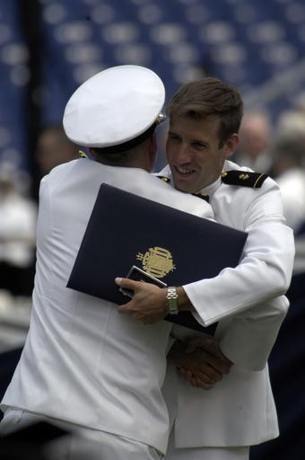 Keywords: US Navy 050527-N-0295M-006 Newly commissioned Ensigns in the U.S. Navy congratulate each other after receiving their diplomas during the 2005 Graduation and Commissioning Ceremony at the U.S. Naval Academy.jpg en Annapolis Md May 27 2005 Newly commissioned Ensigns in the U S Navy congratulate each other after receiving their diplomas during the 2005 Graduation and Commissioning Ceremony at the U S Naval Academy Nine hundred seventy-six Midshipmen graduated from the U S Naval Academy and became commissioned officers in the U S Military President George W Bush delivered the commencement address and personally greeted each graduate during the ceremony The men and women of the graduating class were sworn into the Navy as Ensigns or into the Marine Corps as Second Lieutenants U S Navy photo by Photographer s Mate 2nd Class Daniel J McLain RELEASED 2005-05-27 050527-N-0295M-006 Navy http //www navy mil/view_image asp id 24782 U S Navy photo by Photographer s Mate 2nd Class Daniel J McLain PD-USGov-Military-Navy Graduation and Commissioning Ceremony May 27 2005