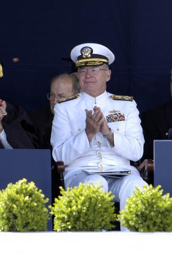 | Keywords: US Navy 050527-N-0295M-009 Chief of Naval Operations, Adm. Vern Clark, applauds as President George W. Bush delivers his remarks as part of the U.S. Naval Academy class of 2005 Graduation and Commissioning Ceremony.jpg en Annapolis Md May 27 2005 - Chief of Naval Operations Adm Vern Clark applauds as President George W Bush delivers his remarks as part of the U S Naval Academy class of 2005 Graduation and Commissioning Ceremony Adm Clark administrated the Oath of Office for Midshipmen becoming Ensigns in the United States Navy Nine hundred seventy-six Midshipmen graduated from the U S Naval Academy and became commissioned officers in the U S Military President Bush delivered the commencement address and personally greeted each graduate during the ceremony The men and women of the graduating class were sworn into the Navy as Ensigns or into the Marine Corps as Second Lieutenants U S Navy photo by Photographer's Mate 2nd Class Daniel J McLain RELEASED 2005-05-27 050527-N-0295M-009 Navy http //www navy mil/view_image asp id 24809 U S Navy photo by Photographer's Mate 2nd Class Daniel J McLain PD-USGov-Military-Navy Vern Clark Graduation and Commissioning Ceremony May 27 2005 |
