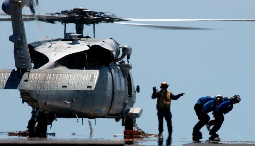 | Keywords: US Navy 050529-N-7130B-073 An aircraft director signals two flight deck crews members away the spinning rotors of an MH-60S Knighthawk.jpg en Pacific Ocean May 29 2005 - An aircraft director signals two flight deck crews members away the spinning rotors of an MH-60S Knighthawk attached to the Black Jacks of Helicopter Sea Combat Squadron Two One HSC-21 after chocking and chaining it to the flight deck of USS Ronald Reagan CVN 76 The Nimitz-class nuclear powered aircraft carrier is currently underway conducting routine carrier operations U S Navy photo by Photographer's Mate 3rd Class Aaron Burden RELEASED 2005-05-29 050529-N-7130B-073 Navy http //www navy mil/view_image asp id 24856 U S Navy photo by Photographer's Mate 3rd Class Aaron Burden PD-USGov-Military-Navy Helicopters at USS Ronald Reagan CVN-76 MH-60S Seahawk Helicopter Sea Combat Squadron 21 United States Navy |