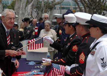 | Keywords: US Navy 050529-N-7878F-006 U.S. Marines and Sailors greet veterans and visitors and hand out World War II commemorative souvenirs during a 60th anniversary commemoration ceremony of World War II.jpg en San Diego Calif May 29 2005 U S Marines and Sailors greet veterans and visitors and hand out World War II commemorative souvenirs during a 60th anniversary commemoration ceremony of World War II The ceremony was organized by the Department of Defense World War II 60th Anniversary Commemoration Committee to pay tribute and recognize World War II veterans for their outstanding service and sacrifice during the Memorial Day weekend U S Navy photo by Don Fletcher RELEASED 2005-05-29 050529-N-7878F-006 Navy http //www navy mil/view_image asp id 24904 U S Navy photo by Don Fletcher PD-USGov-Military-Navy Naval Base San Diego in the 2000s |