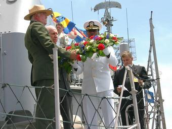 | Keywords: US Navy 050618-N-8110K-056 Boston National Historical Park Supervisor of Interpretation, Bill Foley, Retired Navy pilot and Medal of Honor recipient, Capt. Thomas Hudner, and Commanding Officer, USS Constitution Cmdr. Lewin Wri.jpg en Boston Mass June 18 2005 - Boston National Historical Park Supervisor of Interpretation Bill Foley; Retired Navy pilot and Medal of Honor recipient Capt Thomas Hudner; and Commanding Officer USS Constitution Cmdr Lewin Wright prepare to lay a wreath over the side of USS Cassin Young to honor fallen veterans from all armed services The wreath laying was part of a Department of Defense-sponsored World War II 60th Anniversary Commemoration ceremony at the Charlestown Navy Yard and the culmination to Boston Navy Week Twenty such weeks are planned this year in cities throughout the U S arranged by the Navy Office of Community Outreach NAVCO NAVCO is a new unit tasked with enhancing the Navy's brand image in areas with limited exposure to the Navy U S Navy photo by Journalist 1st Class Dave Kaylor RELEASED 2005-06-18 050618-N-8110K-056 Navy http //www navy mil/view_image asp id 25445 U S Navy photo by Journalist 1st Class Dave Kaylor PD-USGov-Military-Navy Military in Massachusetts Thomas J Hudner Boston Navy Week |