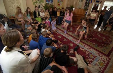| Keywords: US Navy 050703-N-9851B-002 Children living at Cape of Turtle orphanage perform a dance for crew members of the guided missile destroyer USS Curtis Wilbur (DDG 54) during a community relations project.jpg en Salograd Russia July 3 2005 - Children living at Cape of Turtle orphanage perform a dance for crew members of the guided missile destroyer USS Curtis Wilbur DDG 54 during a community relations project Wilber along with the mine warfare ships USS Patriot MCM 7 and USS Guardian MCM 5 visited Vladivostok to celebrate the 145th anniversary celebration of the city U S Independence Day on the Fourth of Jusly and to participate in a wreath-laying ceremony for Russian Sailors who scarified their lives during World War II Curtis Wilber is currently on a routine scheduled underway period U S Navy photo by Photographer's Mate 2nd Class John L Beeman RELEASED 2005-07-03 050703-N-9851B-002 Navy http //www navy mil/view_image asp id 27392 U S Navy photo by Photographer's Mate 2nd Class John L Beeman PD-USGov-Military-Navy Images from US Navy location Salograd Russia |