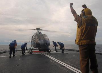 | Keywords: US Navy 050712-N-4374S-034 Sailors assigned to the Colombian frigate ARC Caldas (FM 52) ready an AS 555 helicopter for flight during flight operations in the Pacific Ocean.jpg en Pacific Ocean July 12 2005 - Sailors assigned to the Colombian frigate ARC Caldas FM 52 ready an AS 555 helicopter for flight during flight operations in the Pacific Ocean Caldas is part of a multinational naval and coast guard force from six nations conducting UNITAS 46-05 Pacific Phase off the coasts of Colombia The Colombian Navy in this year s UNITAS Pacific Phase hosts Ecuador Panama Peru and the United States During the two-week exercise participating units have the opportunity to train as unified force in all aspects of naval operations from maritime interdiction to anti-submarine and electronic warfare U S Naval Forces Southern Command sponsors UNITAS exercises with the objective to foster cooperation and develop interoperability among the navies of the region U S Navy photo by Photographer s Mate 2nd Class Michael Sandberg RELEASED 2005-07-12 050712-N-4374S-034 Navy http //www navy mil/view_image asp id 26242 U S Navy photo by Photographer s Mate 2nd Class Michael Sandberg PD-USGov-Military-Navy UNITAS 46-05 Aircraft of the navy of Colombia Airbus Helicopters H125M Fennec ARC Caldas FM-52 |