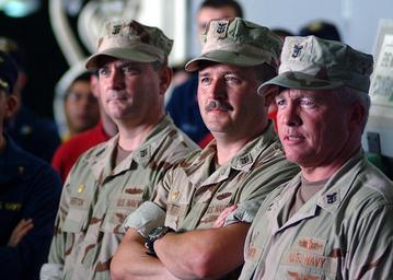 | Keywords: US Navy 050712-N-0962S-136 Three of the Navy's top Command Master Chiefs (CMCs) observe an all hands call by Master Chief Petty Officer of the Navy (MCPON) Terry Scott.jpg en Persian Gulf July 12 2005 - Three of the Navy's top Command Master Chiefs CMCs observe an all hands call by Master Chief Petty Officer of the Navy MCPON Terry Scott From left 3rd Fleet CMC Terry Etherton; 2nd Fleet CMC Don Kultti and 5th Fleet CMC Kelly Schneider traveled throughout the Persian Gulf focusing on Sailors issues in regards to training equipment and manning U S Navy photo by Journalist 1st Class Brandan W Schulze RELEASED 2005-07-12 050712-N-0962S-136 Navy http //www navy mil/view_image asp id 26715 U S Navy photo by Journalist 1st Class Brandan W Schulze PD-USGov-Military-Navy United States Navy in the Persian Gulf Terry D Scott |