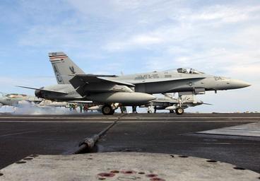 | Keywords: US Navy 050714-N-5345W-065 An F-A-18C Hornet assigned to the Silver Eagles of Marine Fighter Attack Squadron One One Five (VMFA-115) crosses arresting wire number three.jpg en Atlantic Ocean July 14 2005 - An F/A-18C Hornet assigned to the Silver Eagles of Marine Fighter Attack Squadron One One Five VMFA-115 crosses arresting wire number three while performing a touch-and-go on the Nimitz-class aircraft carrier USS Harry S Truman CVN 75 Truman is currently conducting carrier qualifications sustainment operations and participating in a Joint Task Force Exercise JTFEX with USS Theodore Roosevelt CVN 71 JTFEX is a key component in the training cycle of an aircraft carrier and carrier air wing in the U S Navy Fleet Response Plan construct U S Navy photo by Photographer's Mate 3rd Class Kristopher Wilson RELEASED 2005-07-14 050714-N-5345W-065 Navy http //www navy mil/view_image asp id 27203 U S Navy photo by Photographer's Mate 3rd Class Kristopher Wilson PD-USGov-Military-Navy USS Theodore Roosevelt CVN-71 flight deck |
