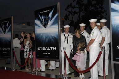 | Keywords: US Navy 050717-N-7281D-127 Sailors and families members wait outside the base theatre on board Naval Air Station North Island prior to the Hollywood premiere screening of the major motion picture movie Stealth.jpg en San Diego July 17 2005 Sailors and families members wait outside the base theatre on board Naval Air Station North Island prior to the Hollywood premiere screening of the major motion picture movie Stealth starring Jamie Foxx Josh Lucas and Jessica Biel The U S Navy supported the production and portions of the movie were shot aboard several Navy vessels including the nuclear powered aircraft carriers USS Nimitz CVN 68 USS John C Stennis CVN 74 and USS Abraham Lincoln CVN 72 U S Navy photo by Photographer s Mate 2nd Class LaQuisha S Davis RELEASED 2005-07-17 050717-N-7281D-127 Navy http //www navy mil/view_image asp id 26295 U S Navy photo by Photographer s Mate 2nd Class LaQuisha S Davis PD-USGov-Military-Navy Aboard USS Abraham Lincoln CVN-72 Film premieres in the United States Guests at Naval Air Station North Island |