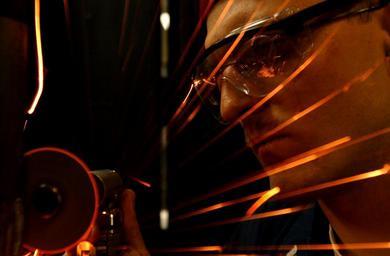 | Keywords: US Navy 050723-N-5549O-099 Sparks fly as Hull Technician 3rd Class Ryan Rousseau of St. Charles, Mich., grinds welding edges on a metal support frame for a washing machine.jpg en Pacific Ocean July 23 2005 - Sparks fly as Hull Technician 3rd Class Ryan Rousseau of St Charles Mich grinds welding edges on a metal support frame for a washing machine and clothes dryer aboard the Nimitz-class aircraft carrier USS Ronald Reagan CVN 76 Reagan is currently underway in the Pacific Ocean undergoing Tailored Ships Training Availability TSTA U S Navy photo by Photographer's Mate 3rd class Kevin S O'Brien RELEASED 2005-07-23 050723-N-5549O-099 Navy http //www navy mil/view_image asp id 26519 U S Navy photo by Photographer's Mate 3rd class Kevin S O'Brien PD-USGov-Military-Navy Grinding and lapping Maintenance on USS Ronald Reagan CVN-76 |