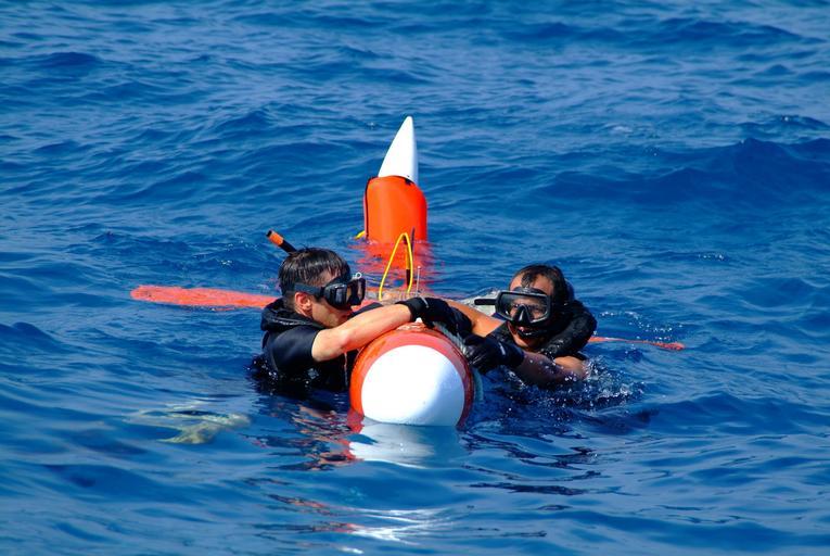 | Keywords: US Navy 050728-N-4772B-073 Quartermaster 2nd Class Jeremy R. Spaulding and Personnelman 2nd Class Gerardo Arbulu retrieve a BQM-74E aerial drone following an air defense exercise.jpg en Java Sea July 28 2005 Quartermaster 2nd Class Jeremy R Spaulding and Personnelman 2nd Class Gerardo Arbulu both search and rescue swimmers assigned to USS Harpers Ferry LSD 49 retrieve a BQM-74E aerial drone following an air defense exercise with U S and Indonesian naval forces during the Indonesia phase of exercise Cooperation Afloat Readiness and Training CARAT CARAT is a regularly scheduled series of bilateral military training exercises with several Southeast Asia nations designed to enhance interoperability of the respective sea services U S Navy photo by Journalist 2nd Class Brian P Biller RELEASED 2005-07-28 050728-N-4772B-073 Navy http //www navy mil/view_image asp id 26620 U S Navy photo by Journalist 2nd Class Brian P Biller PD-USGov-Military-Navy Images from US Navy location Java Sea Personnelman BQM-74 Chukar |
