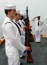 | Keywords: US Navy 050730-N-3666S-094 The honor guard aboard the amphibious assault ship USS Wasp (LHD 1) pays respect to a past shipmate during one of three burial at sea ceremonies held aboard the ship.jpg en Atlantic Ocean July 30 2005 - The honor guard aboard the amphibious assault ship USS Wasp LHD 1 pays respect to a past shipmate during one of three burial at sea ceremonies held aboard the ship The families of the deceased received a folded American flag three casings from bullets used during the 21-gun salute a video of the ceremony and a chart locating exactly where their family member's were laid to rest U S Navy photo by Photographer's Mate Airman Robbie Stirrup RELEASED 2005-07-30 050730-N-3666S-094 Navy http //www navy mil/view_image asp id 26822 U S Navy photo by Photographer's Mate Airman Robbie Stirrup PD-USGov-Military-Navy M14 rifle at sea burials USS Wasp LHD-1 flight deck |