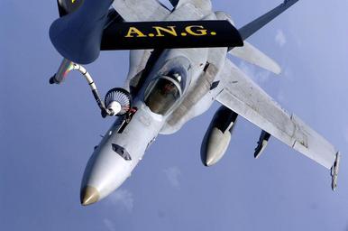 | Keywords: US Navy 050802-F-5040D-025 An F-A-18C Hornet receives fuel from a U.S. Air Force KC-135R Stratotanker during an aerial refueling mission over the Pacific Ocean.jpg en Pacific Ocean Aug 2 2005 - An F/A-18C Hornet assigned to the Dambusters of Strike Fighter Squadron One Nine Five VFA-195 receives fuel from a U S Air Force KC-135R Stratotanker during an aerial refueling mission over the Pacific Ocean The Stratotanker is assigned to the 186th Air Refueling Wing which is deployed to Andersen Air Force Base Guam in order to provide air-to-air refueling between distant locations U S Air Force photo by Staff Sgt Bennie J Davis III RELEASED 2005-08-02 050802-F-5040D-025 Navy http //www navy mil/view_image asp id 27007 U S Navy photo PD-USGov-Military-Navy Images from US Navy location PACIFIC OCEAN Aerial refueling of F/A-18C Hornet Aerial refueling by KC-135 Stratotanker as seen from tanker Strike Fighter Squadron 195 United States Navy |