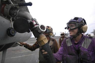 | Keywords: US Navy 050807-N-8604L-059 Airman James Burr of Walls, Miss., refuels a F-A-18E Super Hornet.jpg en Pacific Ocean Aug 7 2005 - Airman James Burr of Walls Miss refuels a F/A-18E Super Hornet assigned to the Royal Maces of Strike Fighter Squadron Two Seven VFA-27 during flight operations aboard the conventionally powered aircraft carrier USS Kitty Hawk CV 63 The Kitty Hawk Carrier Strike Group and the amphibious assault ship USS Boxer LHD 4 are participating in the third annual Joint Air and Sea Exercise JASEX with the U S Air Force and U S Marine Corps in the western Pacific JASEX focuses on integrated joint training proficiency in detecting locating tracking and engaging units at sea in the air and on land in response to a range of mission areas U S Navy photo by Photographer's Mate Airman Joshua Wayne LeGrand RELEASED 2005-08-07 050807-N-8604L-059 Navy http //www navy mil/view_image asp id 26963 U S Navy photo by Photographer's Mate Airman Joshua Wayne LeGrand PD-USGov-Military-Navy Aboard USS Boxer LHD-4 Strike Fighter Squadron 27 United States Navy |