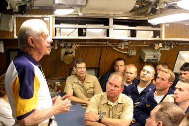 | Keywords: US Navy 050812-N-0653J-001 Former President Jimmy Carter addresses the crew of his namesake ship, the Sea Wolf-class attack submarine USS Jimmy Carter (SSN 23) in the crew's mess.jpg en Atlantic Ocean Aug 12 2005 - Former President Jimmy Carter addresses the crew of his namesake ship the Sea Wolf-class attack submarine USS Jimmy Carter SSN 23 in the crew's mess Carter and his wife Rosalynn spent the night aboard the submarine touring the ship and meeting with crew members USS Jimmy Carter is the third Sea Wolf-class attack submarine U S Navy photo by Lt Mark Jones RELEASED 2005-08-12 050812-N-0653J-001 Navy http //www navy mil/view_image asp id 27237 U S Navy photo by Lt Mark Jones PD-USGov-Military-Navy USS Jimmy Carter SSN-23 Jimmy Carter in 2005 |