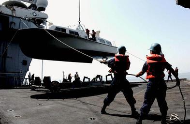 | Keywords: US Navy 050814-N-0413R-087 Sailors direct the Captain's Gig as it's raised back aboard the nuclear-powered aircraft carrier USS Nimitz (CVN 68).jpg en Persian Gulf Aug 14 2005 - Sailors direct the Captain's Gig as it's raised back aboard the nuclear-powered aircraft carrier USS Nimitz CVN 68 The Nimitz Carrier Strike Group is currently on a regularly scheduled deployment and is participating in Maritime Security Operations MSO MSO set the conditions for security and stability in the maritime environment as well as complement the counter-terrorism and security efforts of regional nations U S Navy photo by Photographer's Mate 3rd Class Shannon E Renfroe RELEASED 2005-08-14 050814-N-0413R-087 Navy http //www navy mil/view_image asp id 27133 U S Navy photo by Photographer's Mate 3rd Class Shannon E Renfroe PD-USGov-Military-Navy Aboard USS Nimitz CVN-68 |